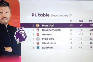 战绩硬!卡里克上任后积分榜:曼联26分领跑,枪手曼城少赛21分